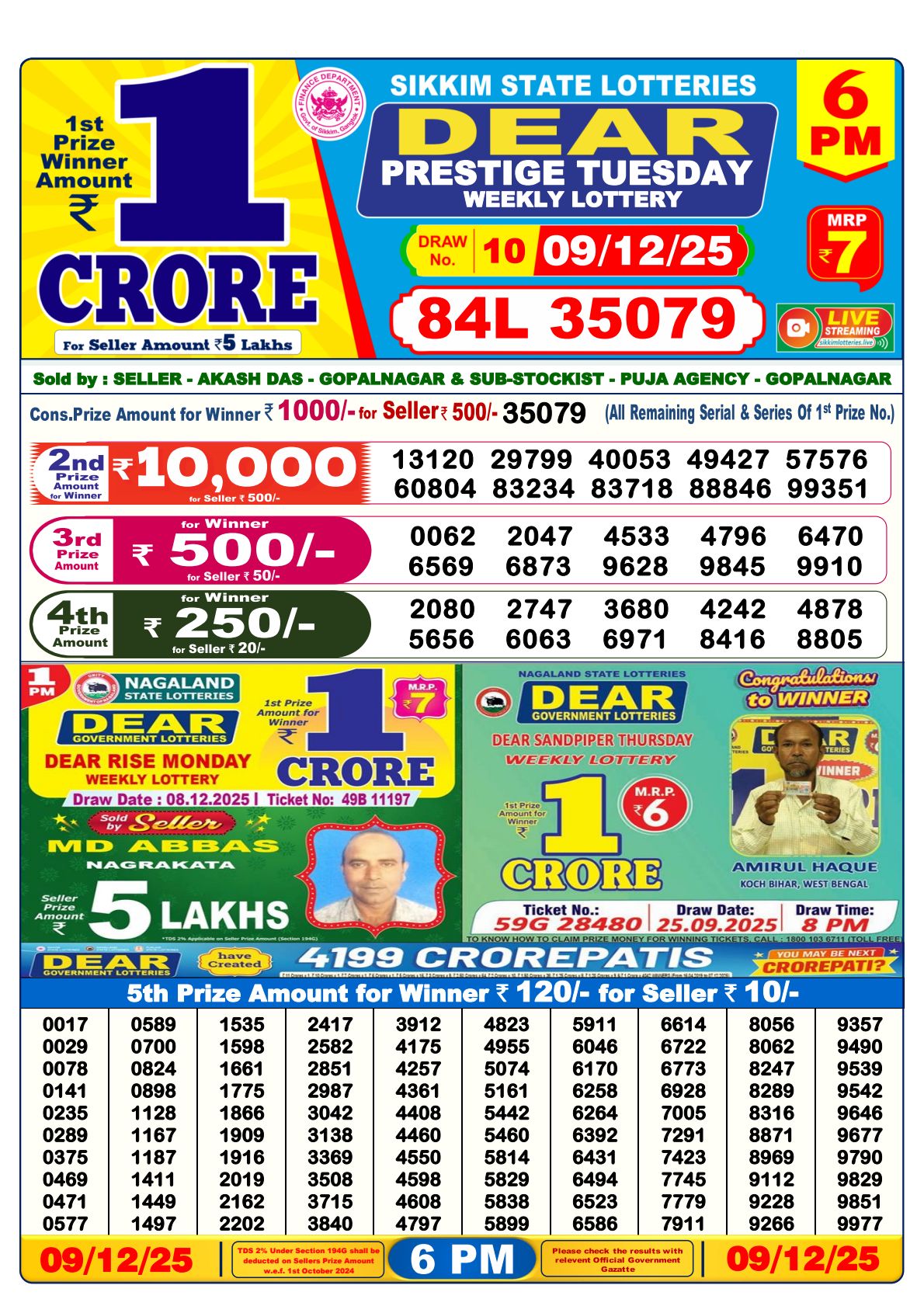 Nagaland State Lottery Result of Dear Day 6:00 PM Live on Lottery Sambad.